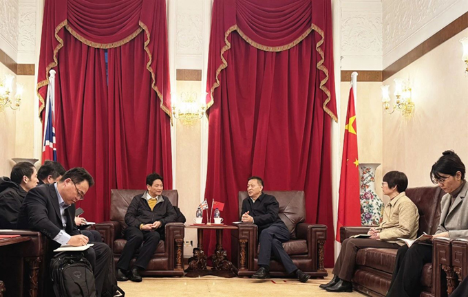 ▲出访团组拜会中国驻英使馆