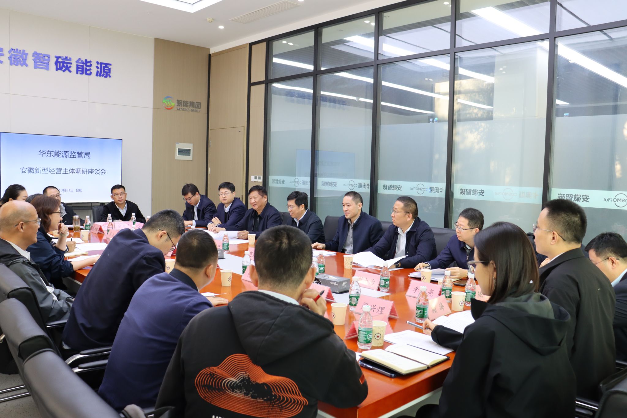 为深入了解新能源企业分布式光伏、储能电站及虚拟电厂参与市场交易情况,10月23日,华东能源监管局一级巡视员王强带队来皖丰长能公司,开展新型经营主体参与电力市场专题调研。华东能源监管局市场监管处处长魏萍和国网安徽省电力公司调控中心、安徽电力交易中心有限公司有关负责同志,集团公司党委委员、副总经理肖厚全以及产业研究院公司、皖丰长能公司负责同志等参加调研座谈会。