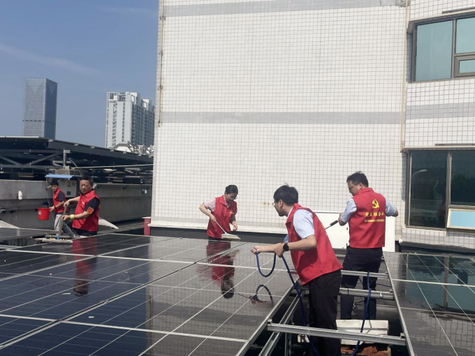 7月18日上午,节能管理党支部与纪检党支部开展党建共建活动,联合组织开展光伏发电板清洗志愿活动,以实际行动践行节能降碳理念。