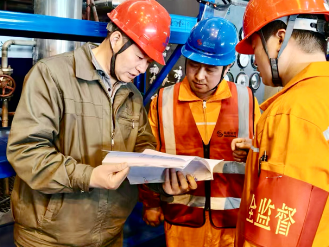 党建引领强意识。党支部以"三会一课"为载体,党支部书记在生产现场开展"安全责任面对面"活动,与党员职工进行安全责任交流,强化全员安全责任意识,推动安全承诺落地见效。在检修作业现场,20余条醒目的红底白字安全标语悬挂于管道、脚手架等重点区域,形成贯穿全作业流程的"红色安全警示线",营造出浓厚的安全生产氛围,让安全理念入脑入心。党支部将思想引领与现场警示一起抓,把安全责任落实到每个作业单元、每个工作岗位,形成"人人讲安全、事事为安全"的良好局面,为企业安全生产保驾护航。