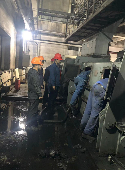 清堵工作中,由于设备内部空间狭小,煤泥粘性大,清理非常困难,面对时间紧、工作量大、施工环境复杂等困难,支部党员魏国荣、刘振宇同志和运行班组人员立即组成党员突击队,分析存在的安全隐患,在做好相应安全措施的前提下,突击队员们兵分两路、轮番上阵,一队人在滚轴筛的平台先用铁锹清理滚轴筛内的积煤,另一队人员在0米的碎煤机机本体上方落煤管观察门和碎煤机观察门处,把高压水管导入孔洞中放水,借助水的压力疏通堵塞的煤泥,使煤泥块松动从而加速下移。在大家的共同努力下,经过15小时的紧急排堵,4月10日凌晨3时,A滚轴筛、A碎煤机及落煤管内积煤自上而下彻底疏通,筛碎煤机随即恢复正常,重载试运正常。