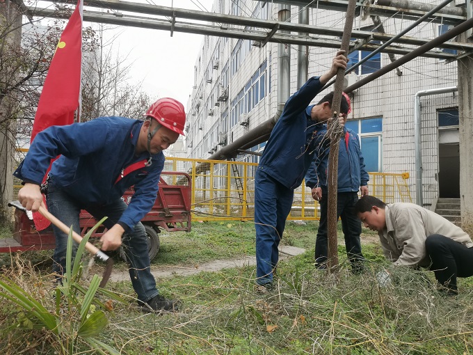 新集项目公司一电厂办公楼西侧杂草丛生,部分杂树杂木疯狂生长不仅堵塞了人行走道,也给经过此处的电线、网线、信号线造成安全隐患。加上冬季枯萎的荒草和落叶,此处环境已成为全厂急需整治的“重灾区”。为彻底解决上述问题,党支部组织党员职工开展集中行动,对此处进行清理。参加活动的党员职工按照分工相互配合,有的飞动镰刀割除杂草,有的铆足劲锯杂树,有的负责清运割除的荒草、杂物。即使在寒冷的冬天,部分参加活动人员仍然热得脱去外套,忙碌的场景为寒冷的冬季增添了一份暖意。