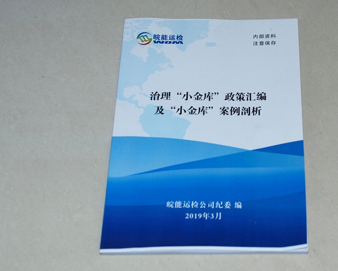 为增强广大员工纪律规矩意识,帮助大家全面准确地领会上级出台的“小金库”问题各项政策和规定,公司纪委于近期组织人员编写了《治理“小金库”政策汇编及案例剖析》手册,共分为四个部分,第一部分是国家、省政府、省国资委、皖能集团公司及皖能运检公司对治理“小金库”问题的有关政策和规定,第二部分是主流媒体对治理“小金库”政策的权威解读;第三部分摘选了部分“小金库”典型案例,第四部分是对发生在我们身边的“小金库”问题进行的剖析思考。