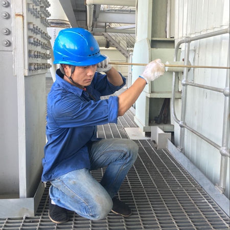 2、8月4日,#4机组进入紧张的调停检修阶段,面对此次检修时间紧、任务重以及高温天气等种种困难,为解决#4炉空预器烟气前后阻力大,差压高的问题,叶军同志顾不上空预器内部近70度的高温,带领人员对A、B空预器内部进行蓄热片起吊、检查作业。因为粉尘和高温,全身上下,几乎很少能看见衣服的“本色”,每一次低头,都汗流满面。为保质保量的完成任务,该同志没有怨言,加班加点,最终在8月5日晚完成了A、B空预器蓄热片抽段检查与回装作业,排除了因高、中温段蓄热片堵塞造成压差高的可能性,为安庆电厂#4机组能够正常启炉提供了可靠的保障。