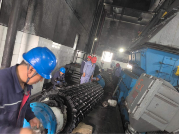 齿辊式破碎机是输煤运行流程中的关键设备之一,其齿辊的磨损会直接影响煤的破碎和生产效率。为确保设备的正常运行,输煤运维机务班组决定对齿辊进行更换。在抢修过程中,维修人员展现出了高度的专业素养和敬业精神,他们不畏困难,在狭小的空间内紧张而有序的忙碌着,有的负责拆卸损坏的部件,有的精心修复和更换关键零件,每一个环节都严谨认真,不容有一丝差错。经过数小时的连续奋战,A齿辊式破碎机终于成功更换。当机器重新启动,发出平稳的运转声时,现场所有人都松了一口气。