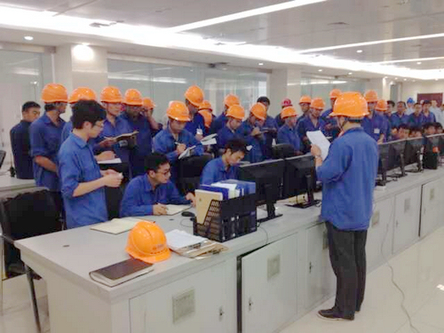 7月30日下午16;10,整个反事故演习在业主方总指挥徐鑫厂长的一声令下开始,气氛也陡然严肃起来。现场指挥欧阳绪霖宣布反事故演习进入第一阶段,值长立即指挥下达命令,主值协助,各专业副控监看dcs画面,巡检迅速到达现场查看内涝汛情,及时通过对讲机向集控室汇报情况,值长联系维护到达现场处理,集控室各专业运行人员在各自岗位上开始有序忙碌。16:40,巡检在现场反馈内涝汛情已排除,第一阶段结束。进入第二阶段,值长及时向调度汇报情况,主值协助值长协调各专业运行工作,巡检人员迅速到达现场查看设备情况,及时向集控室汇报,副控根据DCS及现场反馈信息及时做出判断处理。经过运行人员努力,厂用电恢复,值长协调各专业运行人员,准备重新启动机组,集控室不停传来运行人员用对讲机沟通的声音,透过对讲机深深感受到紧张气息,但各项事故后处理工作在有条不紊的进行着。17:40时,负荷带到60MW,第二阶段顺利结束。