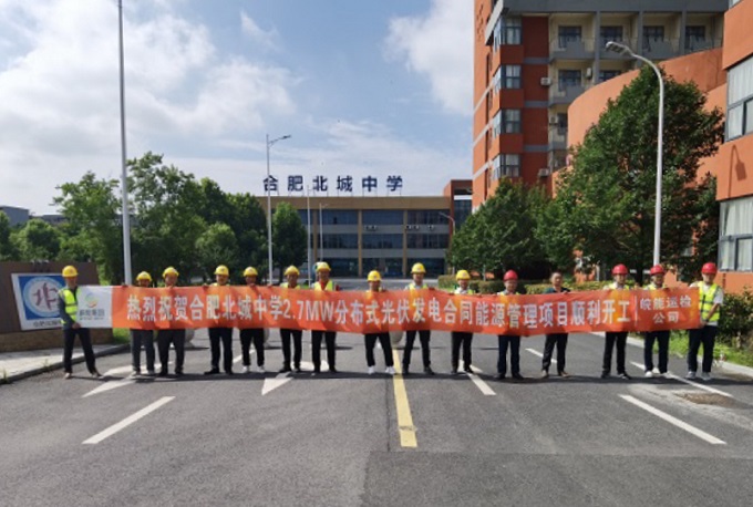 8月1日,由皖能运检控股子公司-安徽皖能长丰能源管理利用有限公司投资建设的合肥北城中学2.7MW分布式光伏发电合同能源管理项目顺利开工,皖能运检公司党委副书记、总经理叶茂与项目总承包单位及校方代表出席开工仪式。