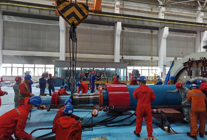 在工作现场,王家杰听取了项目负责人关于检修进展情况的汇报,详细了解近期检修安全、质量、进度等情况,并针对项目执行提出要求。一是要组织参修人员进行全员全过程安全技术交底,明确作业顺序和安全注意事项;二是要抽调经验丰富的专业检修人员,分别负责汽轮机侧和励磁机侧检修工作;三是在发电机转子回穿过程中,项目管理人员、技术人员要层层压实责任,严格把关每一道工序,确保高质量完成转子回穿任务。