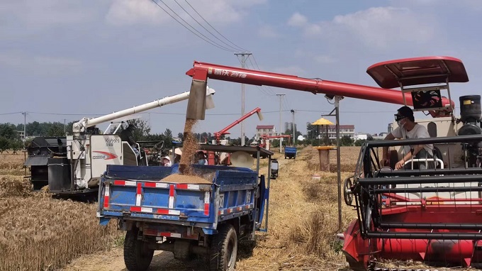 近日,阜南县焦陂镇牛寨村近4000亩小麦,在驻村干部和村两委带领下全部收割完毕,完成了全村小麦颗粒归仓的重要任务。