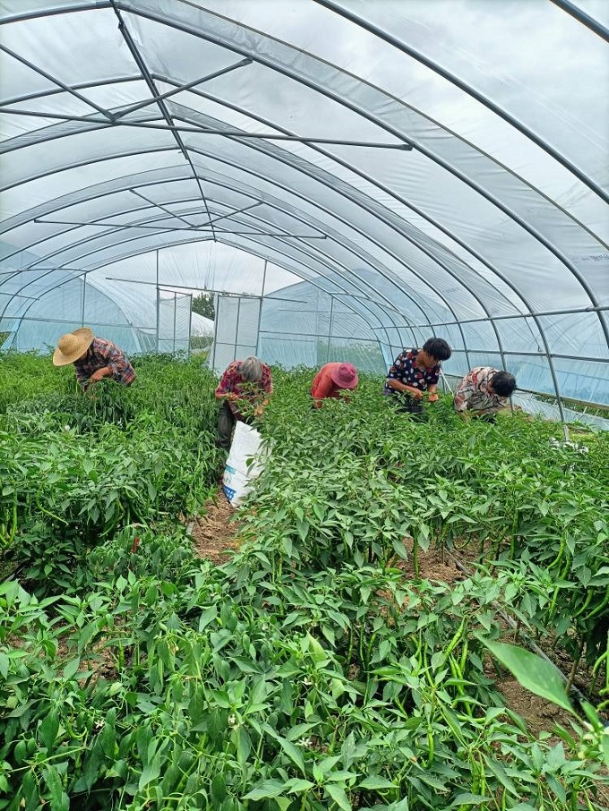 近日,阜南县焦陂镇牛寨村大棚辣椒和毛豆迎来丰收,其中辣椒价格是2022年秋季辣椒的4-6倍,预计亩产增收2000元以上。