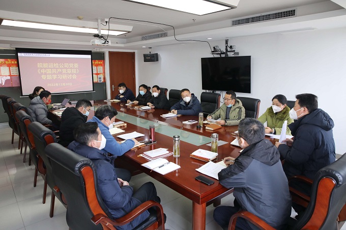 12月30日,皖能运检公司召开党委理论学习中心组学习会,专题学习研讨《中国共产党章程》,公司党委理论学习中心组成员、部分职能部门负责人参会。