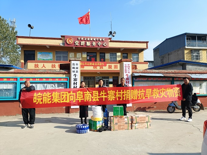 11月7日,皖能运检公司、皖能马鞍山公司、新能公司共同向牛寨村捐赠了价值一万元的水泵、水管、电缆等抗旱物资,为缓解旱情送去“及时雨”。牛寨村党总支书记、村民委员会主任董士龙代表牛寨村接受捐赠,他表示,这批抗旱物资的及时到位能够有力解决村里的旱情,牛寨村脱贫户、监测户、五保户等家庭困难人员或急需抗旱物资的村民可以无偿使用这批抗旱物资。