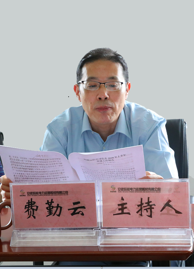 7月30日下午,皖能运检公司在创新大厦召开2020年上半年党建工作暨思想政治工作培训会议。公司党委书记主持会议并讲话,公司领导张宏、朱勇军、欧阳辉、王肖宁、叶茂,各党支部书记、项目部经理、机关中层以上管理人员出席会议。