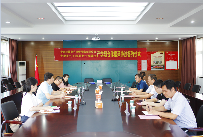 7月31日下午,公司党委副书记、执行董事、总经理张宏一行赴安徽电气工程职业技术学院,签订产学研合作框架协议。公司总工程师叶茂、安徽电气工程职业技术学院副院长徐兵、教务处副处长王劼、动力工程系主任胡胜利出席了签约仪式。