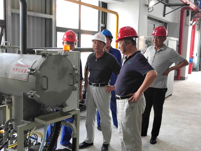 8月21日,皖能运检公司党委委员、公司副总经理朱勇军在恒发公司总经理周道平陪同下,赴五河环保项目部进行工作调研。