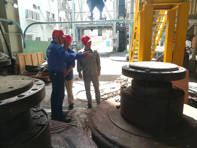 9月4日,越南分公司副总经理王庆赴越南沿海电厂三期大修现场检查指导工作,沿海三期检修项目部现场负责人周守宏就检修进度、质量保证、安全措施等工作进行了工作汇报。