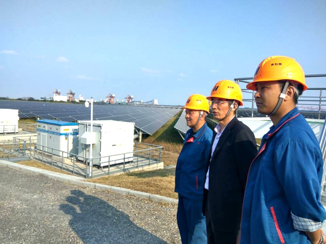 钱大奎深入现场一线,查看了华能太仓电厂40兆瓦渔光互补光伏电站,向项目部经理戴斌及技术人员详细询问了光伏项目的运行状况,人员配置等具体情况,对运行人员认真负责的工作态度表示赞赏,并鼓励大家再接再厉,让工作再上一层楼。