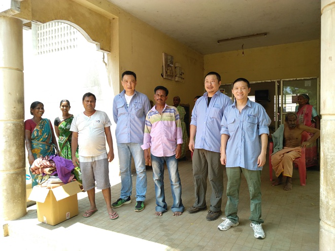 中午,在项目经理邓志强带领下,大家将收集的物资和购买的慰问品集中送抵救助点,一些受捐助的老人和残疾人用感激的目光注视着我们,印度库达洛尔当地收容所的工作人员也向我们竖起了大拇指表示敬佩。