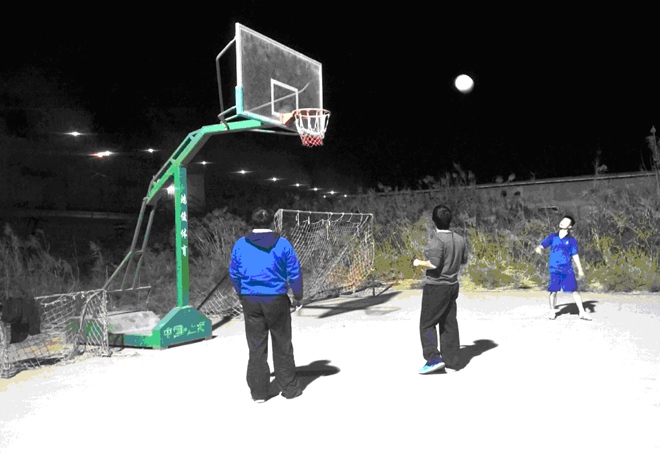 营地内靠近河边处设有健身房,配有健身器材和台球、乒乓球等球类运动设施。健身房晚上7:00开门,不上夜班的同事在晚饭后三三两两去健身房锻炼身体或切磋球技。办公室旁边的开阔低地上有一个球场,集篮球场与足球场功能于一身。闲暇之余,员工们会在球场组织篮球赛和足球赛,上了球场,一个个生龙活虎,工作的疲惫也会一扫而光。条件虽然简陋,但大家也能玩的尽兴,让异国的生活不再落寞暗淡。