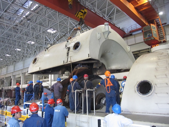 皖能马鞍山发电公司201A修低压外缸成功起吊