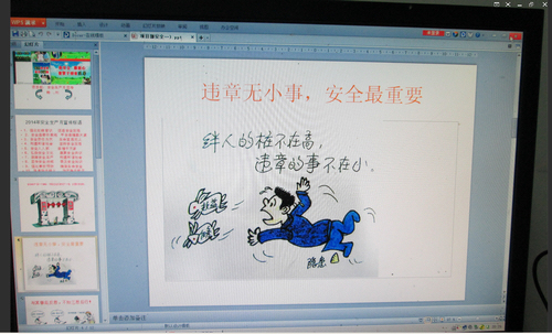 项目公司专门为本次“安全生产月”活动精心设计了若干项子活动,力求在视觉上有触动,行动上有作为,把安全生产月教育活动落到实处。项目公司安全主管认真搜集整理有趣的安全漫画集、安全警句集,利用班后会分批组织各专业观看《生命的红线》、《盲洞.迷途》、《生命的时刻》等安全教育片,引导员工开展安全教育大讨论,对典型事故进行剖析,吸取教训,营造公司人人注重安全的良好氛围。(文/图 赵德祥)