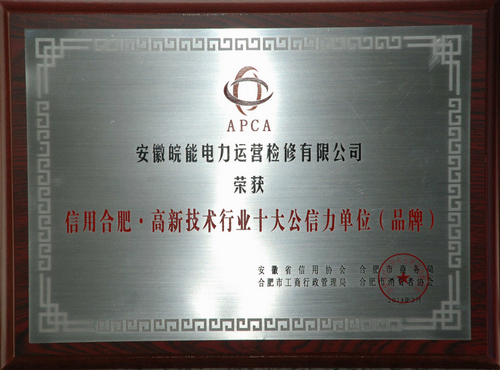 Anhui Wenergy Power Operation and Maitenance Co., Ltd is awarded the honorary title of Hefei city Top 10 Credibility Units selected and appraised jointly by Anhui Credit Guarantee Association, Hefei Municipal Commerce Bureau, Hefei Administration for Industry and Commerce, and Hefei Comsumer Association.