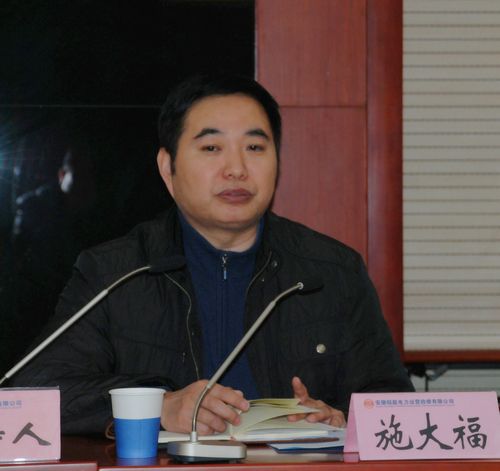 皖能股份公司总经理施大福在总结发言中指出:2013年皖能运检公司取得了一些成绩。第一,守住了安全底线;第二,好的体制和机制已经建立起来;第三,市场占有率在逐步扩大,正从低端市场向高端市场进入;第四,不断进行管理上创新,建立了科学的分配机制。同时指出了存在的不足:一是技术人才还显不足,由于皖能内部电厂扩建了一些大机组,老电厂的检修人员承担维护检修的任务自身应接不暇,抽调人才越来越难,必须要有广阔的心怀,广纳天下贤才,建立高端技术人才库;二是安全上还存在薄弱环节,作为电力企业服务型单位,最好的营销就是安全和质量。施大福总经理在谈到2014年工作时强调:一要抓好安全生产工作,项目经理的责任重大,安全工作无小事,要关爱员工;二要加快市场培育,提高高端市场的占有率,要做到有所为有所不为,要以效益为驱动力,树立品牌意识;三要加快人才培训,立足自己的力量来培训;四要处理好与分公司的关系,在品牌上以皖能运检公司为主,在具体项目实施上让分公司自己去做,同时,皖能内部各大电厂要大力支持运检公司的工作。