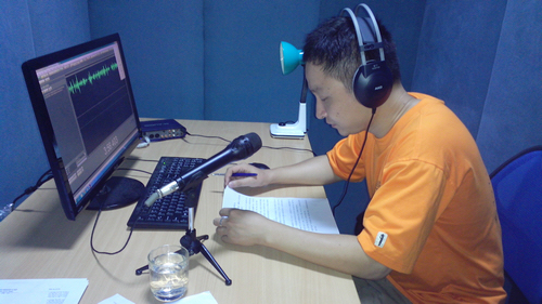 团支部书记李云枫正在旁白录音