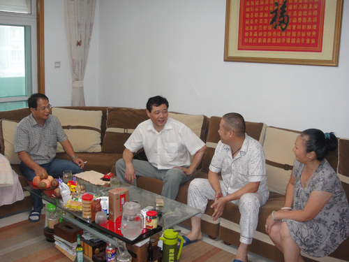 朱庆福看望员工家人