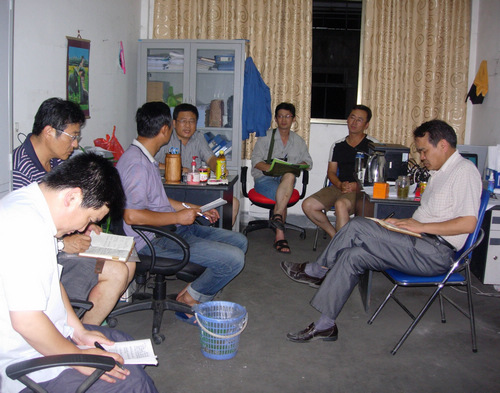 图为广宁检修项目部利用晚间休息时间召开周安全例会及检修协调会