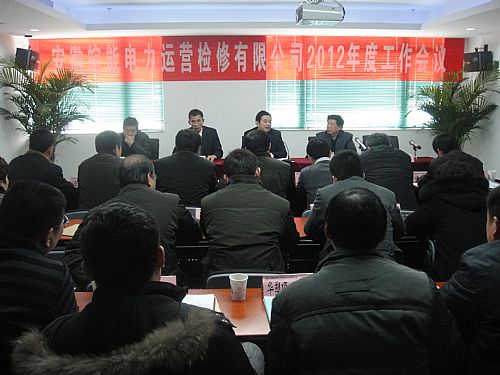 1月8日—9日,公司在合肥本部召开2012年度工作会议。电管公司总经理、运检公司副董事长施大福,电管公司副总经理方世清出席会议,公司领导、各分公司常务副总经理和专职副总经理及市场部和财务部负责人,公司各直属项目部经理,以及公司各部门负责人参加了会议。