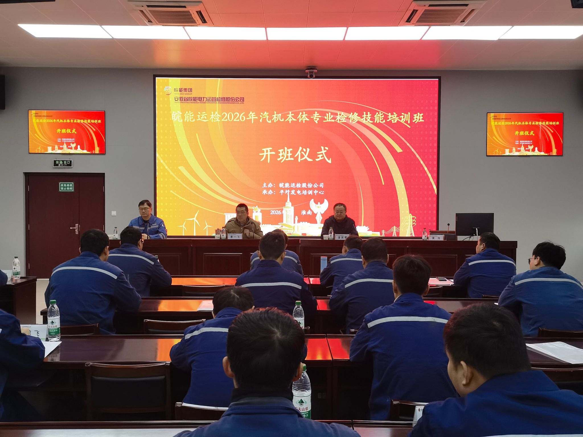 1月6日,皖能运检股份公司汽轮机本体检修技能提升班在平圩发电培训中心顺利开班。公司总工程师曹一飞、副总工程师潘家敏,平圩发电公司副总工程师沈国栋出席开班仪式。来自公司各单位的28名学员将参加为期15天的集中培训。