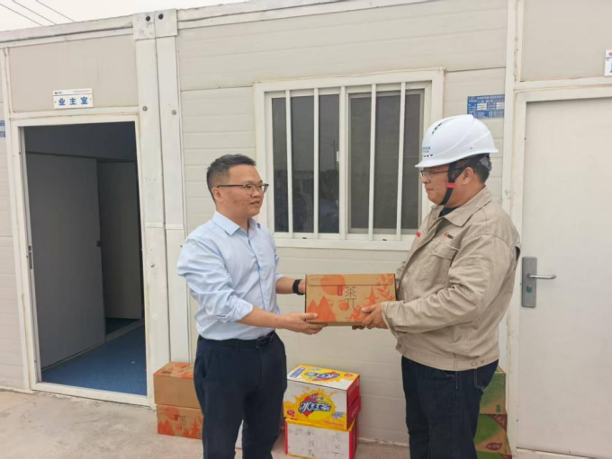 在新疆西黑山、江布等项目部,叶茂为职工们递上矿泉水、清凉饮品和防暑药品,细致询问现场工作人员防暑降温措施落实情况;实地查看员工宿舍、食堂等生活区域,对坚守在戈壁高温、偏远艰苦环境中的新疆片区项目职工送去组织的深切关怀。