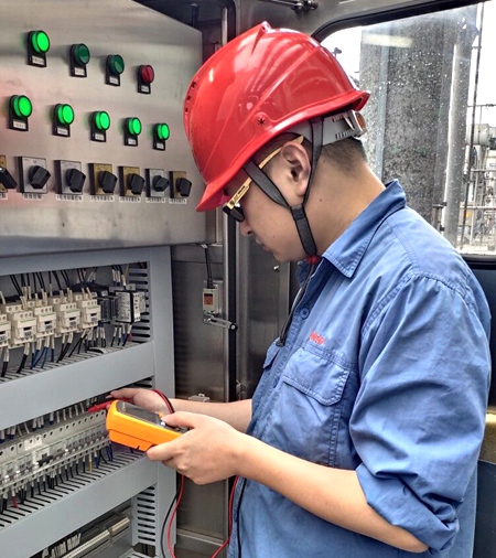 2019年5月3日,电气主管黄海波在停运的#2机发电机励磁系统碳刷处对于滑环温度长期温度高进行原因排查,从去年6月份至今#2机励磁机滑环处温度持续偏高,最高达到180℃,且测量电流发现碳刷电流分布不均最大38A最小的4A。通过更换刷握、碳刷、加强冷却风扇效果均不佳,经此次停机检修期间对#2机组励磁系统全面排查,清理滑环风道,检查每个风口情况,刷握弹力试验,并用百分尺和水平仪对励磁机座、刷架进行测量,发现滑环表面靠近侧面处光滑度不够,刷握的尺寸精度也未能达到厂家要求,整体刷架在去年大修后安装水平度不够,刷架轻微倾斜可能是造成碳刷受力不均匀从而使励磁电流分布不均的主要原因。联系业主方和维护方进行数据分析,同时因工期不够的原因决定先做紧急处理并加强巡查,待7月份大修时再处理。5月8日机组启动后复测温度最高123℃。此次设备异常原因排查中,电气主管黄海波分析仔细发现了相关的问题,并编制了机组运行时的技术措施,做好了突发情况的紧急处理方案。