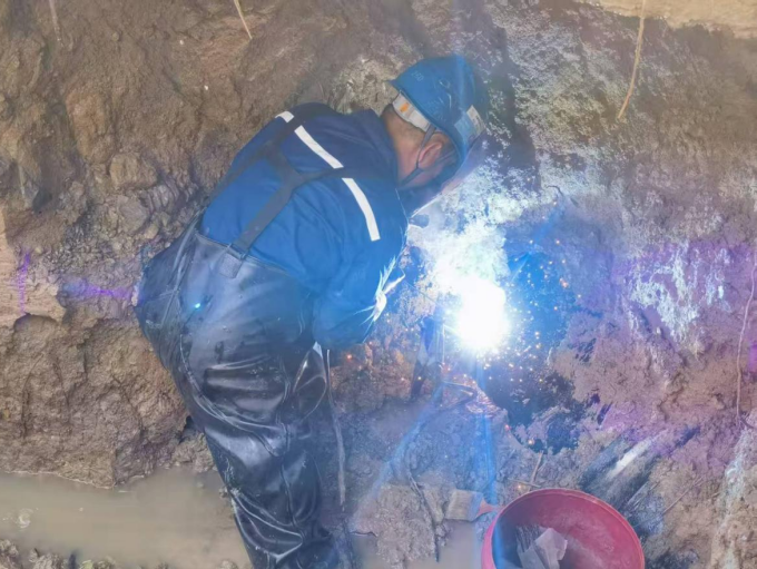 险情发生后,项目公司立即组织技术骨干赶赴现场勘察,并迅速调集抢修人员、机械及物资装备。由于正值迎峰度夏关键期,机组处于高负荷运行状态,作业窗口期十分有限。项目部经过精准研判,决定在机组低负荷时段及夜间人员通行低谷期作业,既保障发电安全,又最大程度减少对民生的影响。当时,抢修现场地表温度接近40℃。抢修队员顶着热浪开展开挖、焊接、封堵等工作,汗水反复浸透工装又被烈日晒干,后背渐渐结出盐渍。面对管线老化、作业空间狭窄等难题,大家争分夺秒推进抢修,经过连续12小时奋战,漏点成功封堵,供水系统恢复正常,路面积水也及时清理完毕。