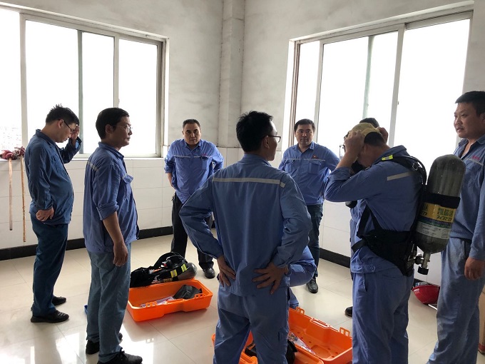 项目经理周治才指出,正压式呼吸器及气体检测仪是保证有限空间作业安全的两大法宝,要求各专业负责人要引起重视,将正压式呼吸器看成保命器,务必做到全员掌握。同时提出安全工作首先从专业负责人抓起,做到一级带着一级干,一级做给一级看,将安全知识与应急知识及时传递下去,切实提高全员安全技能水平,为更好地完成各项生产任务打下坚实的安全基础。