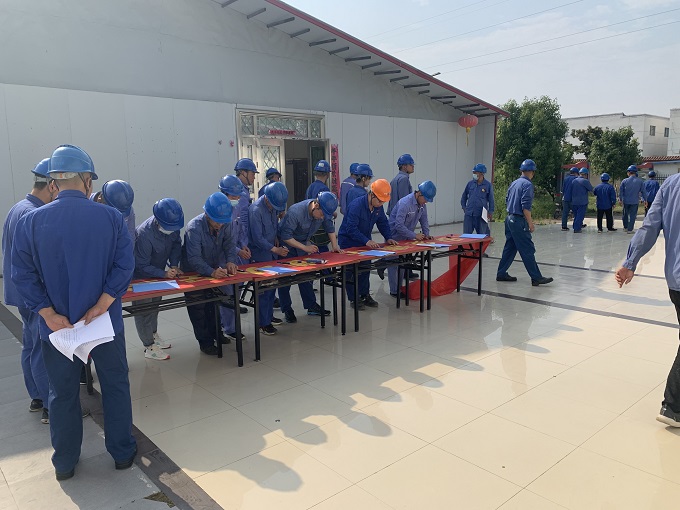 动员会上,板集项目公司相关负责人宣读了“安全生产月”活动方案,并结合“安全生产月”主题和板集项目公司安全工作具体情况,就“安全生产月”活动期间的具体活动内容、活动要求和注意事项进行了强调和部署。整个动员会全面贯彻“落实安全责任、推动安全发展”的活动主题,做到了重点突出、责任明确、内容清楚、具体到人。全体参会员工在“安全生产月”活动主题横幅上郑重签下自己的姓名,做到了“以诺践行”。