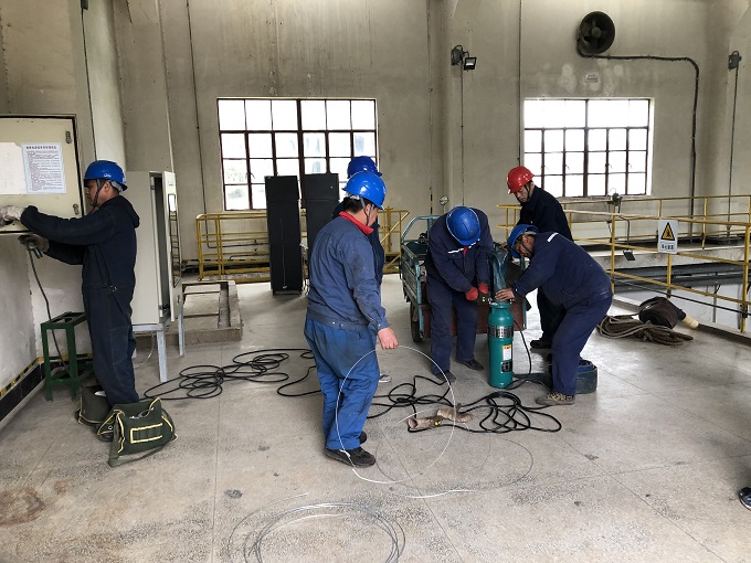此次演练险情假想:受台风影响,淮北地区连降大到暴雨,周边河流水位上涨,电缆沟道因长时间雨水浸泡,封堵出现漏洞,雨水通过电缆沟道开始向综合水泵房倒灌。演练总指挥徐炳好宣布演练开始,大家伴随着一声令下,迅速投入到紧张而有序的防汛演练中。皖能运检国安项目部接到险情通知后,迅速组织电气、化水班组抢险人员兵分两路,一组前往雨水井检查雨水泵无法启动原因,另一组人员运送防汛物资沙袋、铁锨、潜水泵、水龙带、临时电控箱、电缆等,用沙袋搭好围堰,增设2台临时潜水泵对倒灌进综合水泵房的积水进行外排。经过对雨水泵检查抢修,所有雨水泵均恢复正常运行,雨水井液位持续稳定下降,险情得以控制,宣布演练结束。