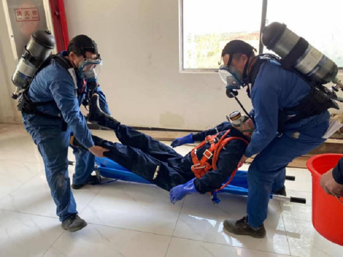 演练前,按既定计划对参演人员进行相关安全知识培训并交代窒息晕倒事故应急处理流程。演习过程中救援人员在第一时间了解情况并逐级上报,并紧急启用应急预案,现场警戒、引导被困人员有序撤离、应急医药使用、及时采取正确的救援措施,对窒息晕倒人员进行胸外按压急救和人工呼吸,反应出较好的应急救援能力。