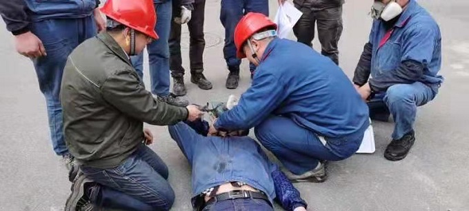 滁州环保项目部组织受限空间气体中毒应急演练