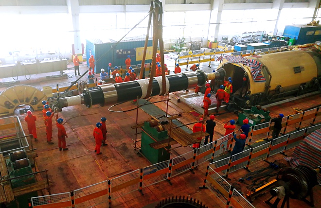 上午8时30分,随着发电机穿转子起重指挥发出的指令,发电机转子缓缓吊起,缓慢向定子膛内移动。下午12时31分,发电机穿转子圆满完成.。全程历时4个小时,中途未出现任何差错,得到了监理、和业主领导的高度赞扬。(王胜楠)
