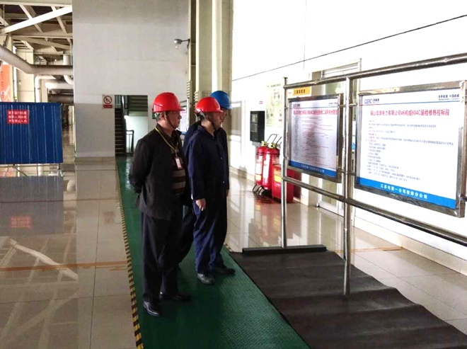 4月27日,皖能运检铜山华润项目#6机组C修期间,皖能运检公司副总经理朱勇军在市场部石广富陪同下赴检修现场检查和指导工作。