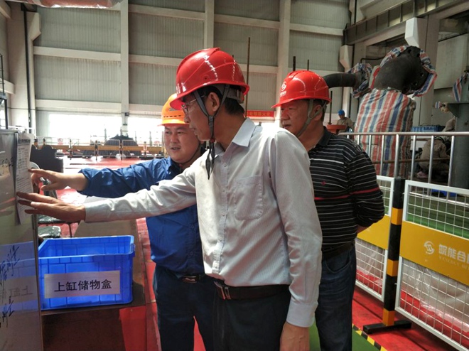 2018年5月4日下午,皖能合肥电厂502A修进入汽机本体解体关键时期,皖能运检公司执行董事、总经理钱大奎和副总经理朱勇军前往皖能合肥电厂502A修现场看望皖能运检公司参战员工,听取了现场项目经理杜浩的工作汇报。钱大奎对现场的工作进度给予了肯定,对现场管理工作进行了指导,要求项目部确保安全高效的完成本次A修工作。