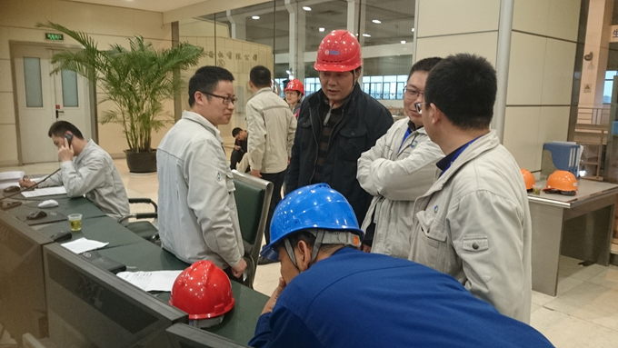 图为公司副总经理朱庆福在检修现场查看技术参数