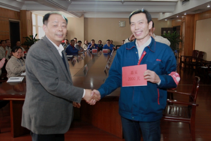 11月10日,在神皖安庆皖江发电有限公司生产协调会上,公司总经理徐顺喜代表公司对发现重大隐患的皖能运检安庆项目部进行嘉奖,并给予现金奖励。