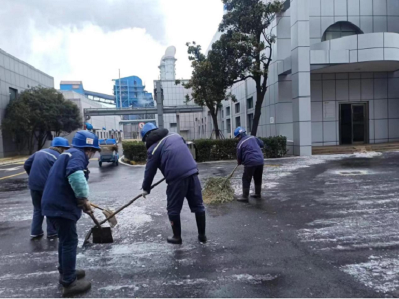 冻雨过后,国能马鞍山项目公司迅速开展除冰行动并启动应急预案。工作人员冒着严寒,顶着风雪,全力以赴投入到道路除冰工作中。他们分组行动,采用机械设备和人工相结合的方式,对重点路段、弯道、走廊等易结冰区域进行不间断除冰作业,全力确保项目工程的顺利进行。