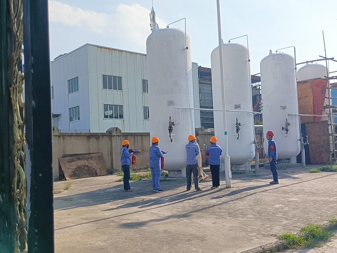 此次演练情景设置为人员在巡检过程中发现D氢罐排污阀轻微泄露产生蓝色火苗,巡检人员果断对初期火势进行控制,同时逐级向上汇报并启动制氢站着火应急处置预案,随后对制氢系统进行隔离、着火部位防护及对罐体进行降温等,整体流程一气呵成,成员相互配合默契,演练取得了圆满成功,得到了业主单位的一致认可。化学运行以此次应急演练为契机同步开展了消防器材正确使用专题培训,确保以练促训取得新成效。