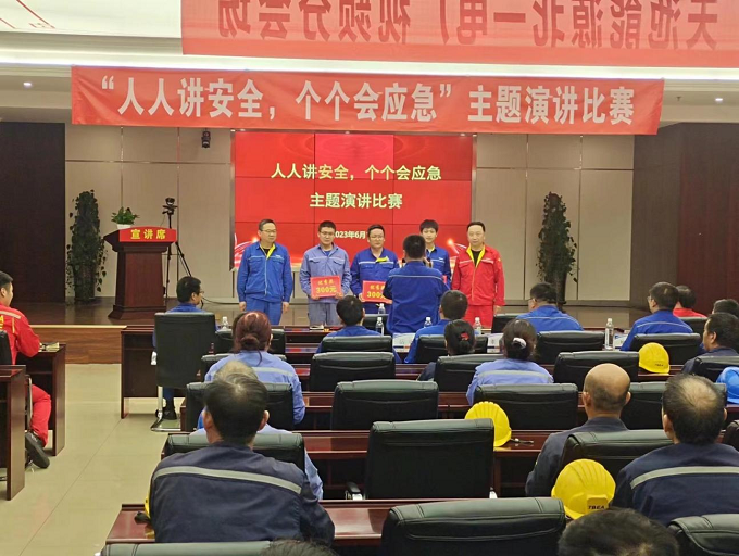 6月14日,新疆准东特变能源有限公司举行了“人人讲安全,个个会应急”主题演讲比赛,为提高员工安全防范意识、规范安全行为,项目部积极组织、热情参与此次活动。