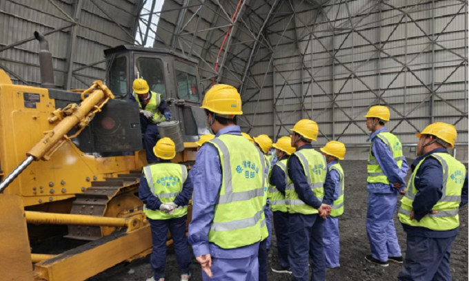 项目部发扬以老带新的传统,首先由推煤机老师傅向大家介绍了推煤机使用说明和原理结构以及汽车来煤接卸注意事项和推煤机司机岗位职责,针对性的从推煤机的检查、启动、操作,到推煤机的保养及简单的故障处理,向备岗司机做了详细讲解。实际演练过程中对推煤、平整煤场中需要注意的问题做了实操示范。后续检验学习成果,由班长现场提问,根据个人掌握情况,进行一对一实操练习。推煤机老师傅对实操练习中存在的问题进行耐心纠正,对备岗司机提出的疑问,一一做了细致的解答。