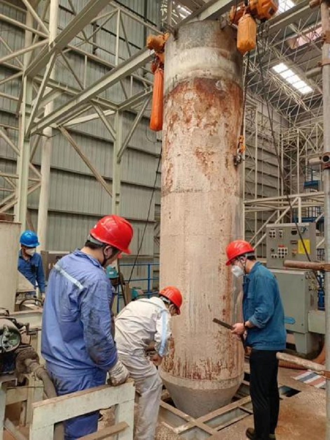 此次中心筒检修工作的顺利完成,保证了雾化器的正常运行,也为后期烟气脱硝以及环保参数符合排放标准奠定了基础。